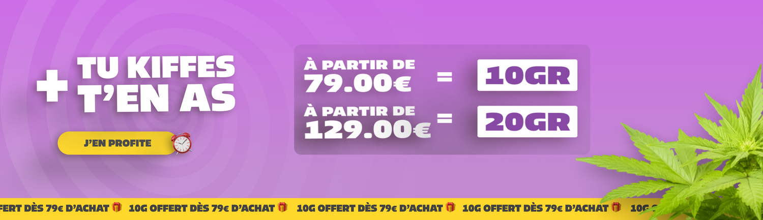Prix habituel À partir de 39,00 €Prix habituelPrix unitaire 9,75 €/g45,00 €Prix promotionnel À partir de 39,00 €LIVRAISON 🎁 5G OFFERT 🍃Promotion