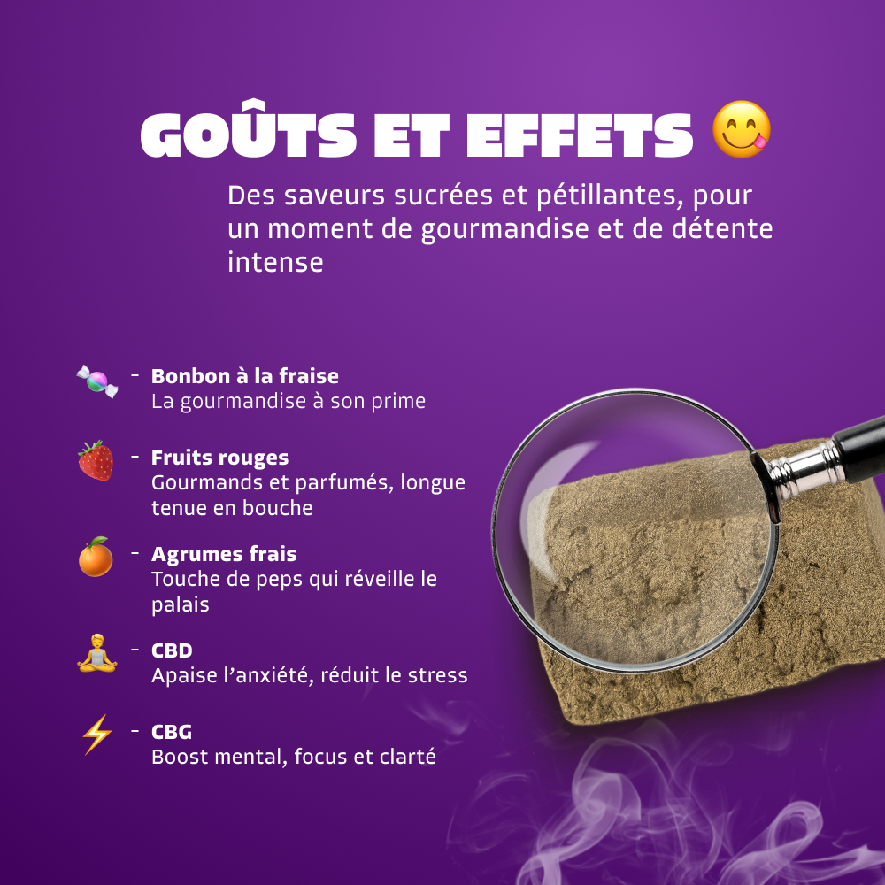 Je privilégie des producteurs français qui maîtrisent la culture propre et les sélections aromatiques. Chaque strain est contrôlé (cannabinoïdes, terpènes, contaminants) et retenu pour son goût.