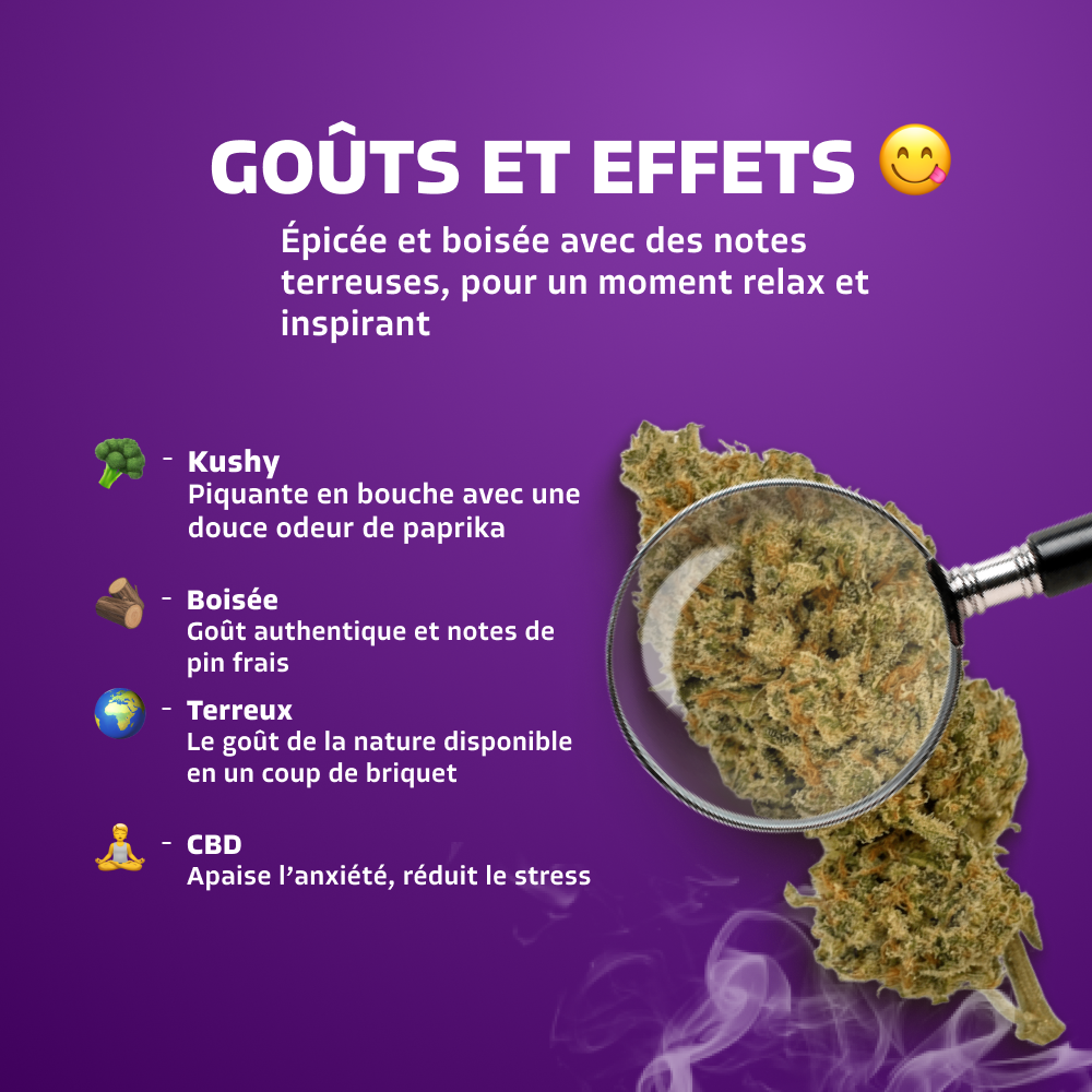 Je privilégie des producteurs français qui maîtrisent la culture propre et les sélections aromatiques. Chaque strain est contrôlé (cannabinoïdes, terpènes, flavinoïdes) et retenu pour son goût.