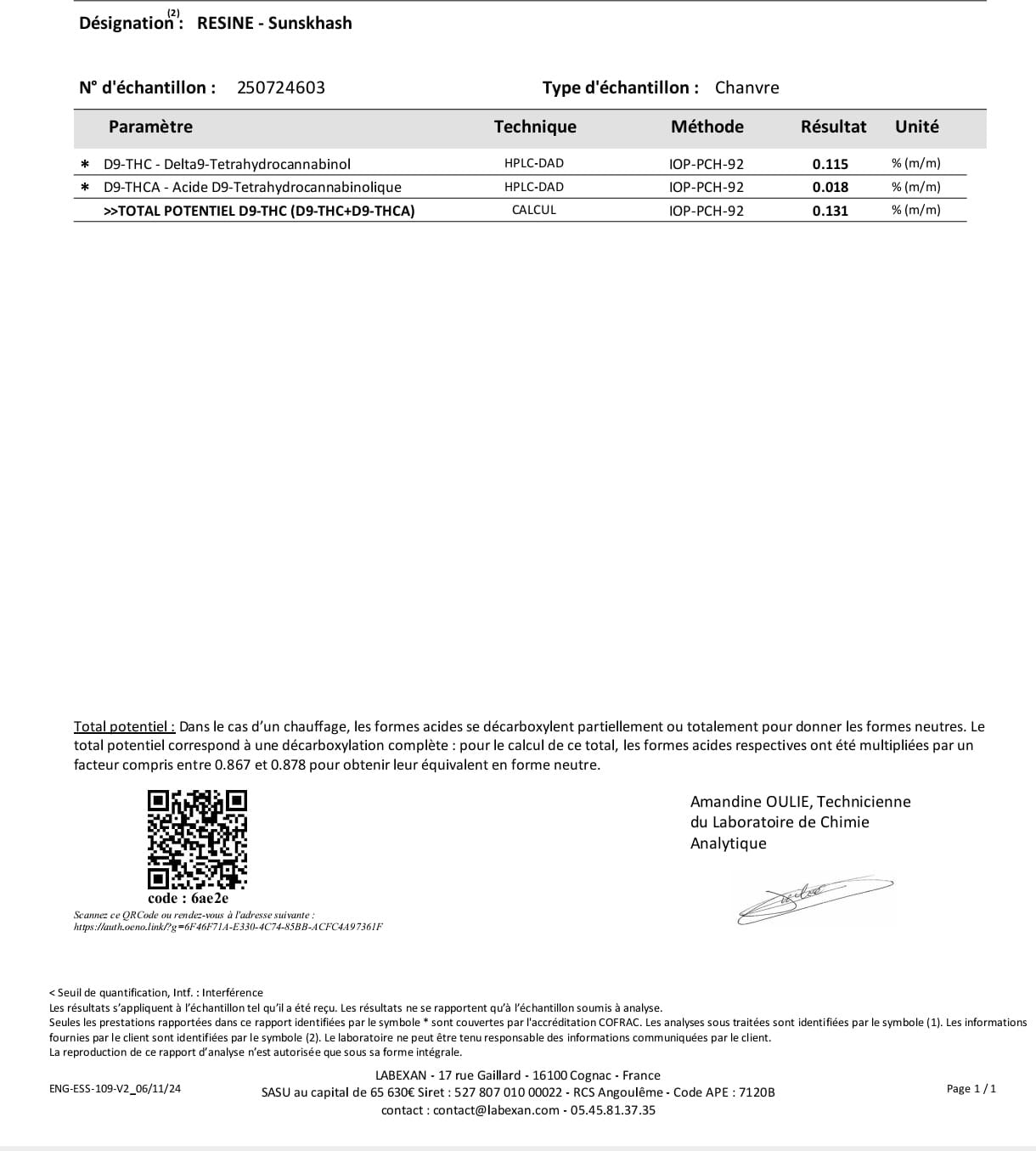 Chaque lot est testé en labo indépendant.